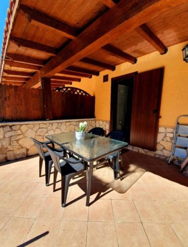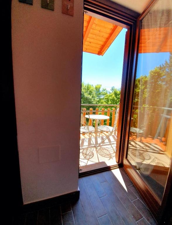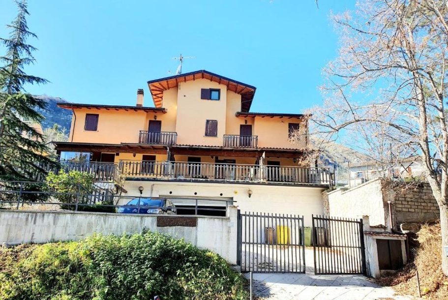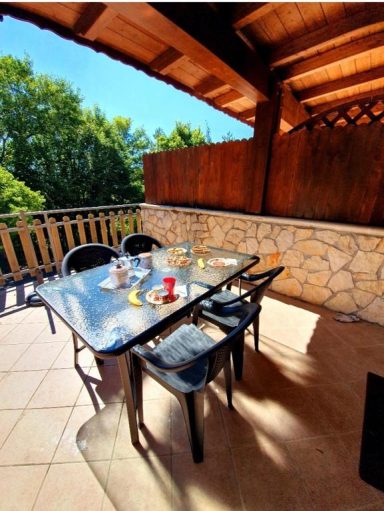 Completano la proprietà un ampio terrazzo vista montagna attrezzato con tettoia, tavolo e sedie e uno spazioso giardino recintato.